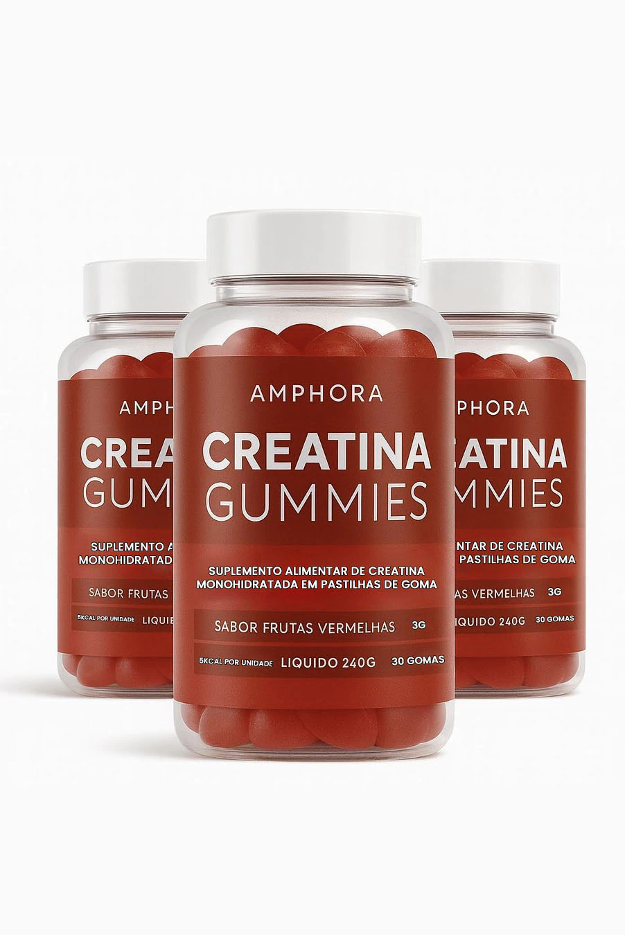 A Creatina Gummies da Amphora possui a dose de 3g de creatina por goma com apenas 5kcal por unidade. Possui sabor irresistível de frutas vermelhas. Praticidade para consumir a qualquer hora, em qualquer lugar!